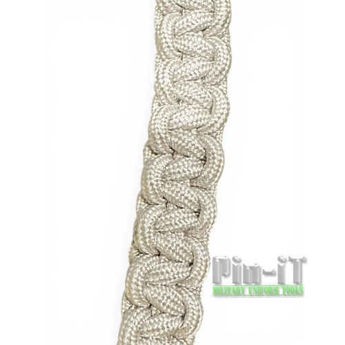 Inspired by traditional aiguillette shoulder cords, this cobra knot design offers a modern, durable version of a classic military accessory. The bright white color creates a strong visual contrast, enhancing the overall presentation of the uniform while maintaining a clean and disciplined look.